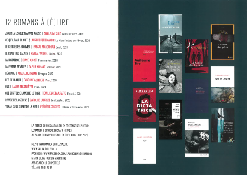 Les 12 livres sélectionnés sont parus entre octobre 2019 et octobre 2020, à compte d'éditeur, et sont diffusés en librairie dans toute la France.